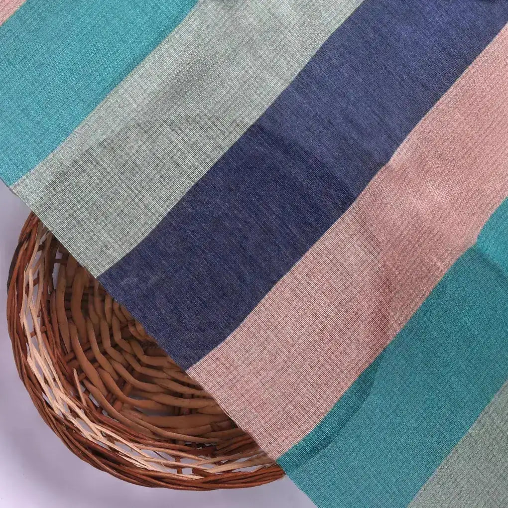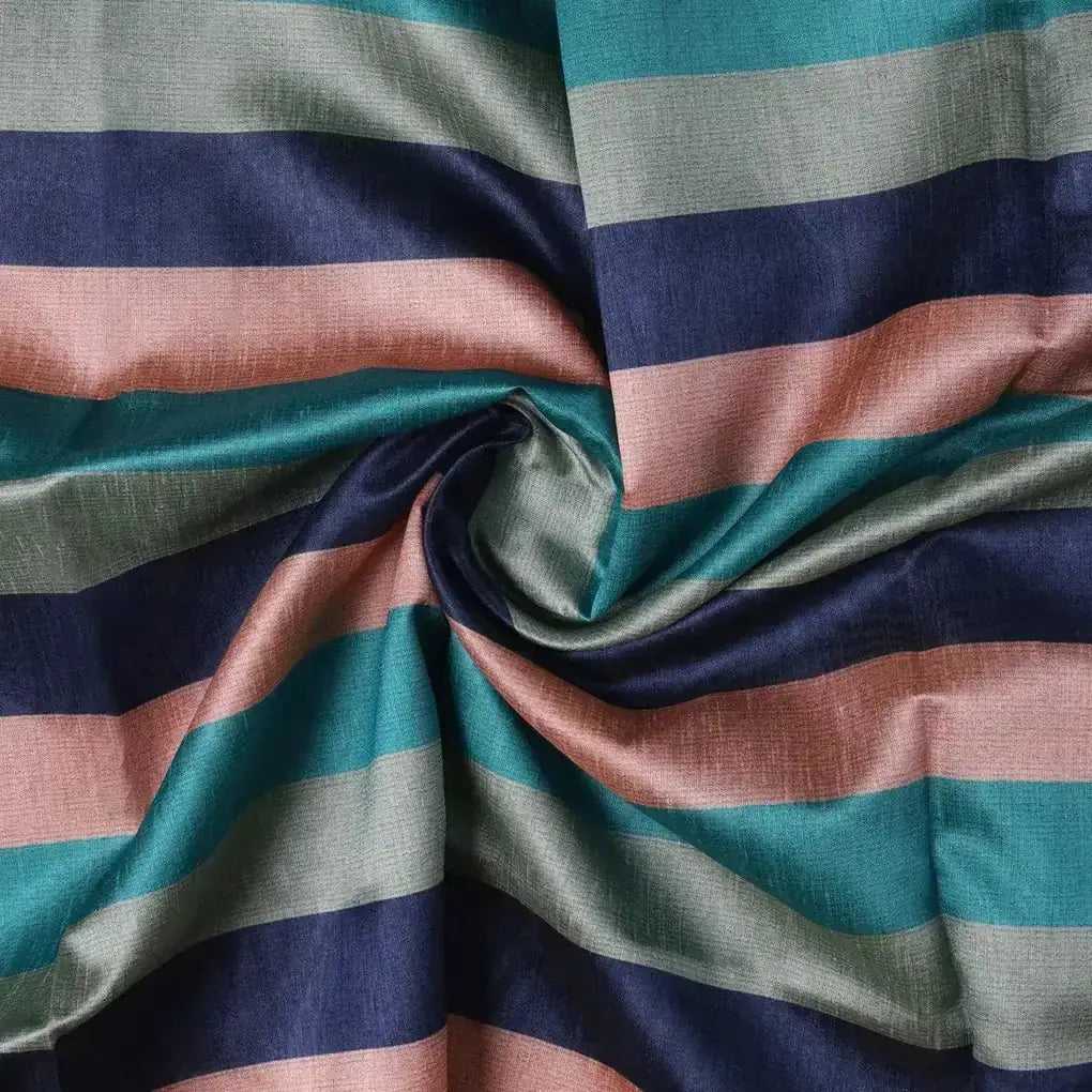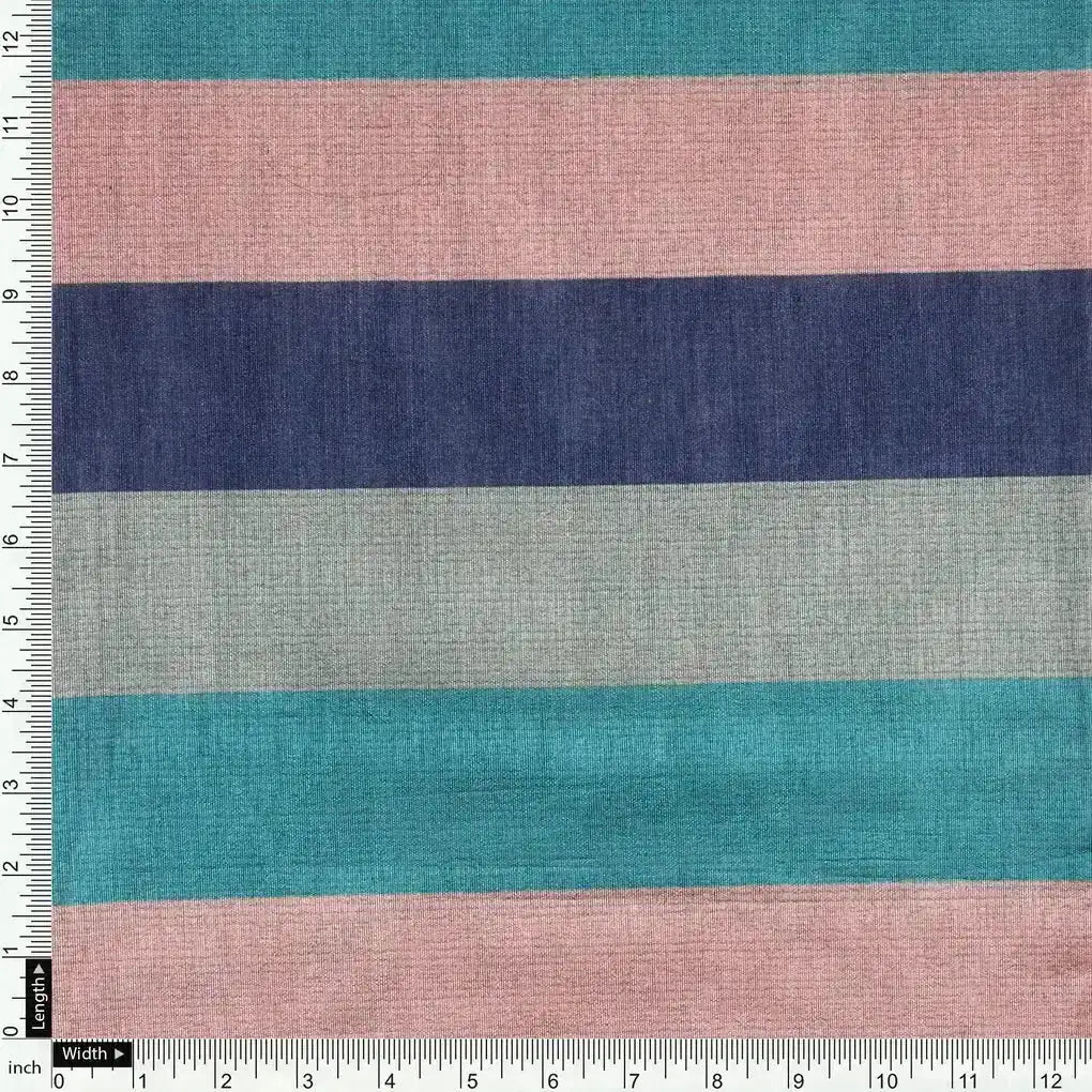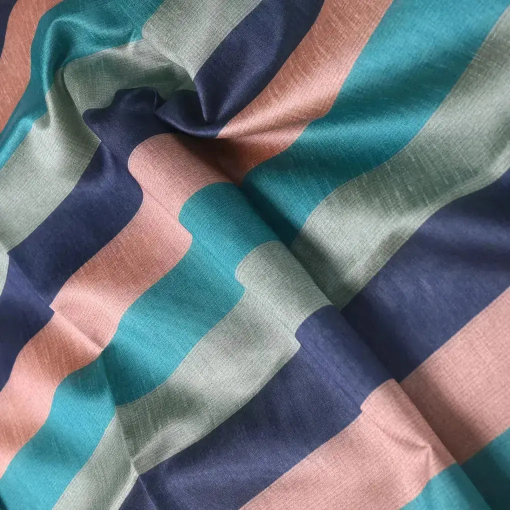 Subtle Colour Stripes Digital Printed Fabric - Tusser Silk