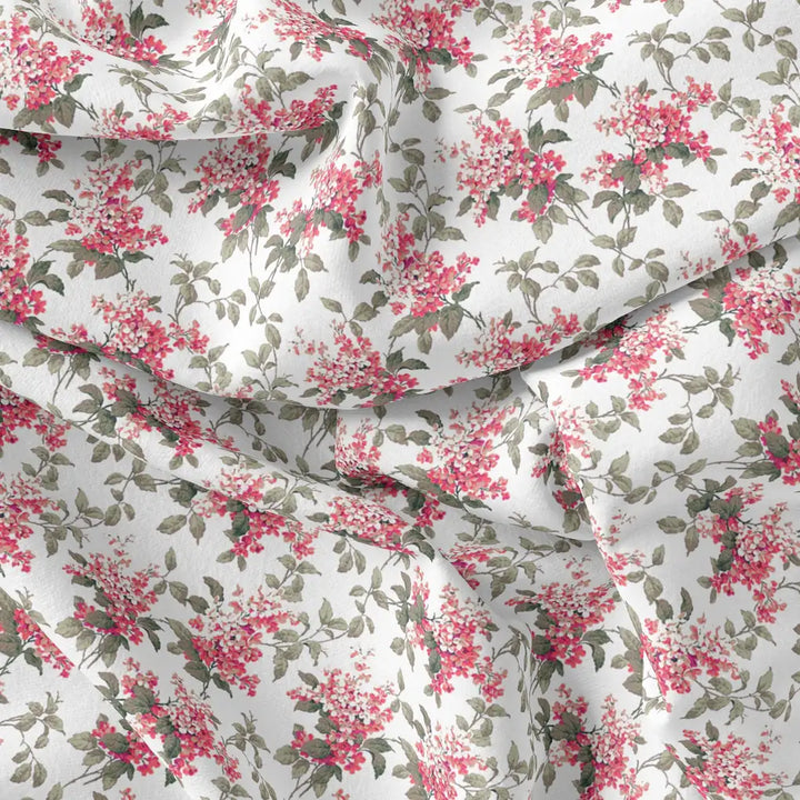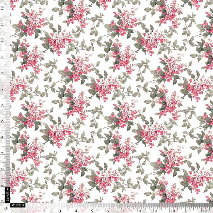Tiny Daffodil Flower With Birch Leaves Digital Printed Fabric - Poly Muslin