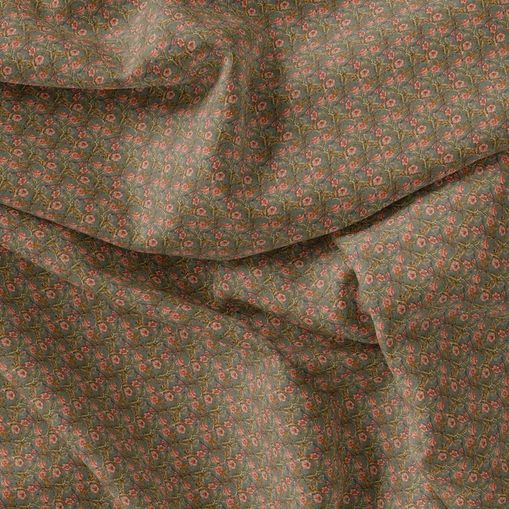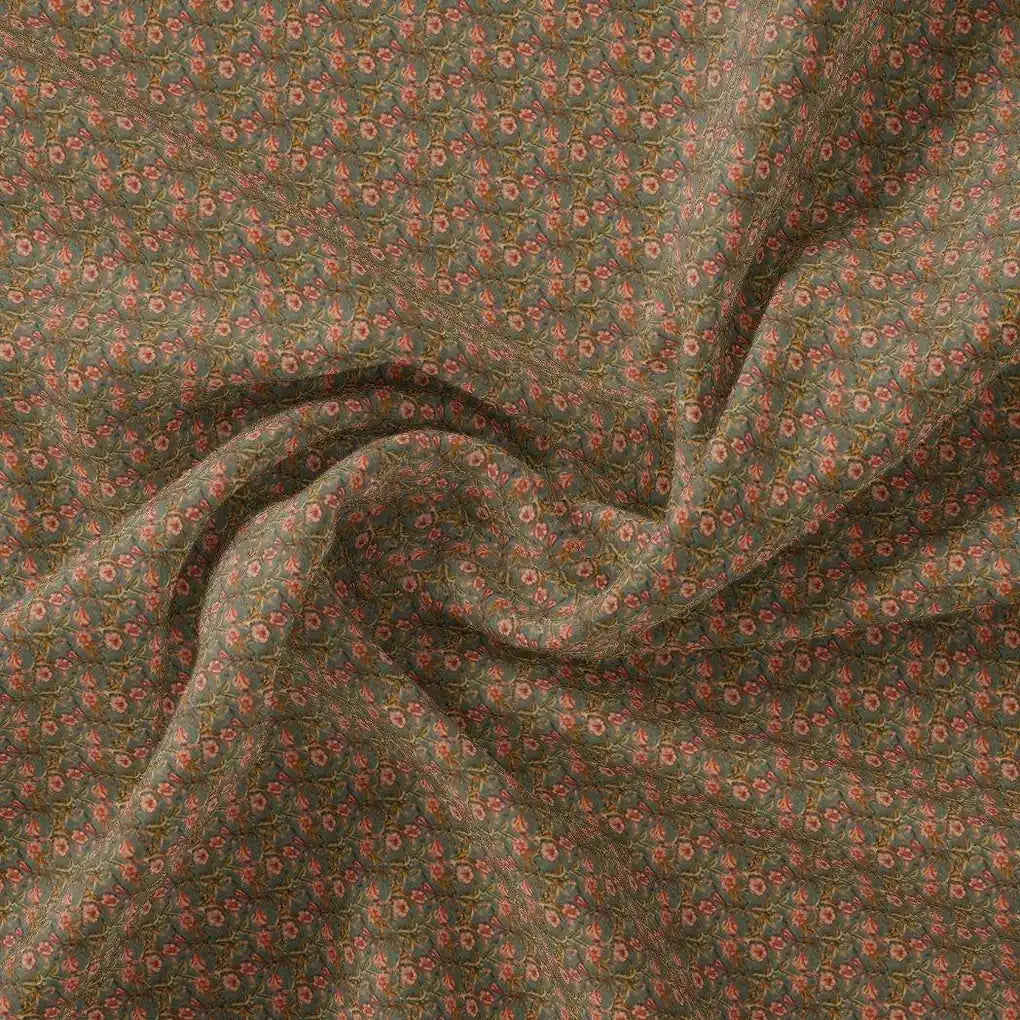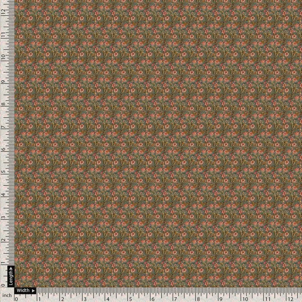 Tiny Golden Branch With Burnt Umber Roses Digital Printed Fabric