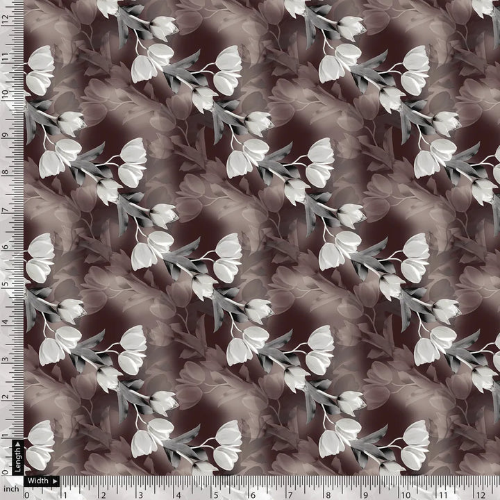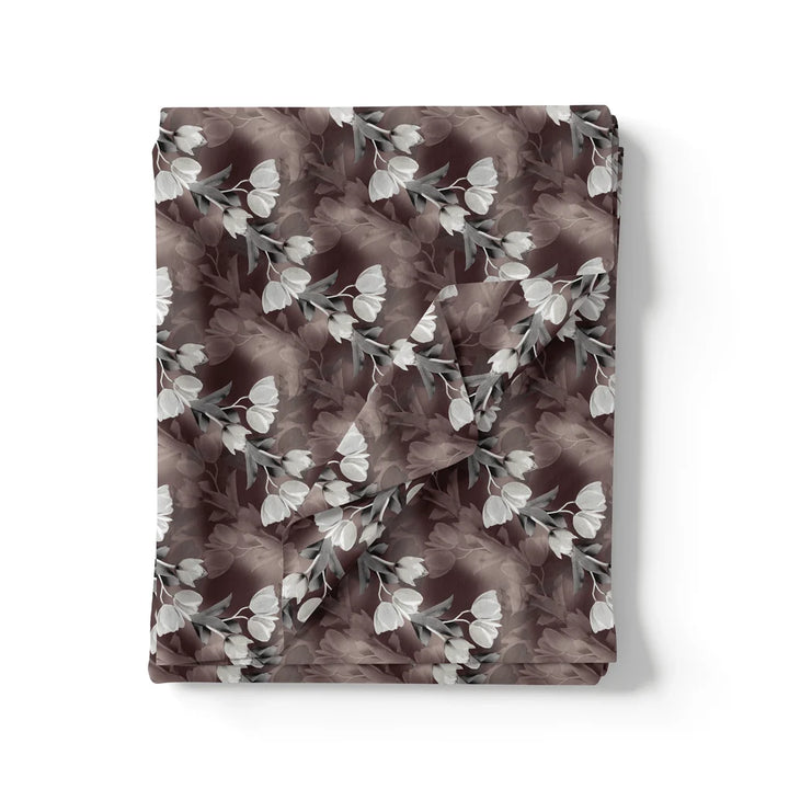 Watercolor Blooming Flower Brown Flower Digital Printed Fabric - Silk Crepe