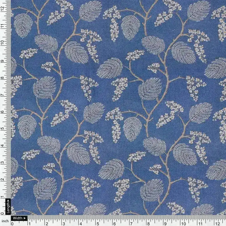 White Jasud Flower With Stalk Digital Printed Fabric - Pure Cotton