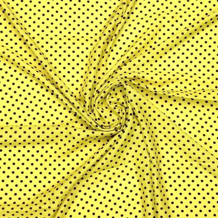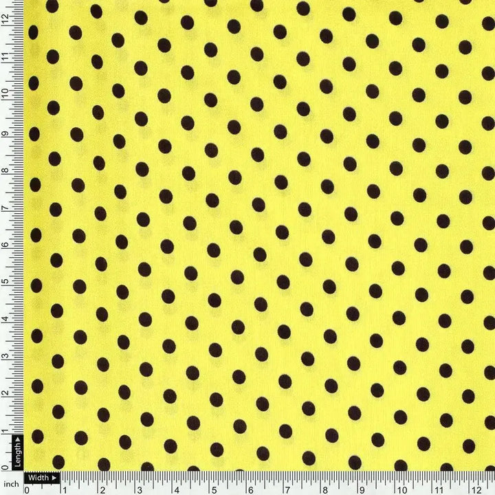 Yellow Polka Dot Digital Printed Fabric - Kora Silk