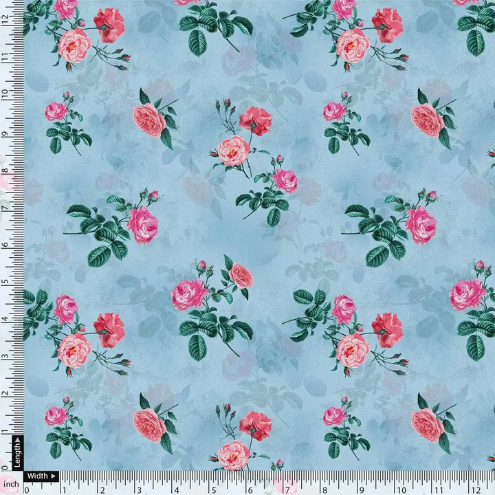 Aspen Green Leaf With Pink Rose Digital Printed Fabric - Weightless
