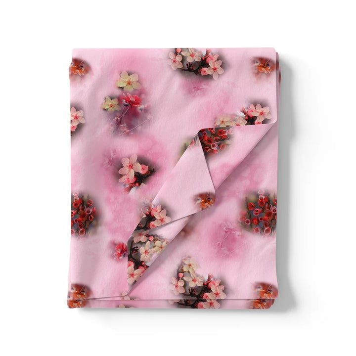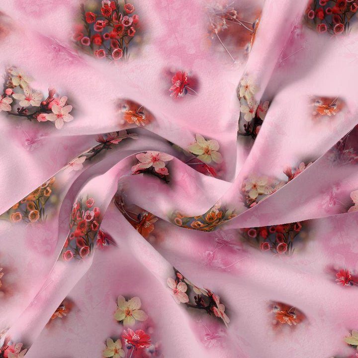Attractive Jasmin Pink Flower With Orange Rose Digital Printed Fabric