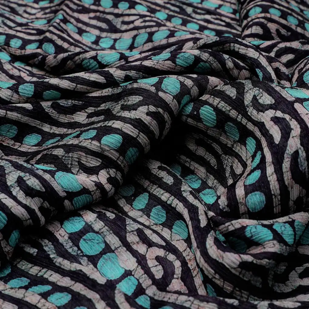 Attractive Polka Dot With Strips Digital Printed Fabric - Pure Chinon