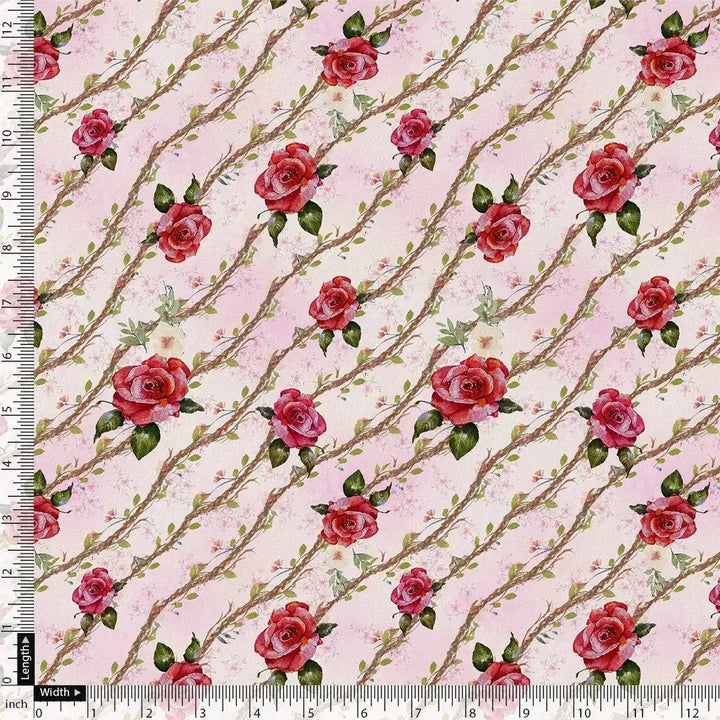 Autumnal Red Roses With Leaves Digital Printed Fabric - Weightless