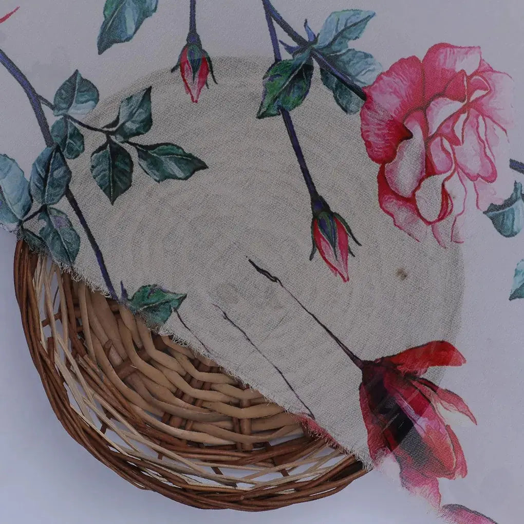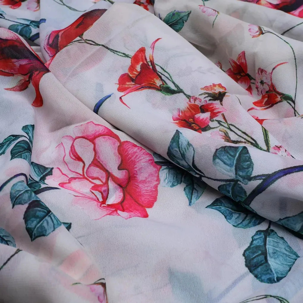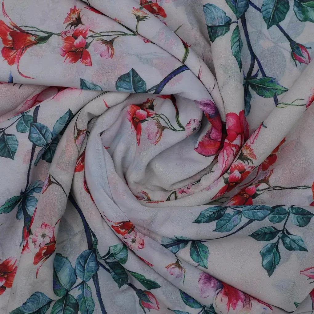 Introducing the Beautiful Ditsy Red Rose with Lavender Rose Weightless fabric from FAB VOGUE Studio. This digital printed fabric is made of polyester, making it lightweight and perfect for any season. The cream color of the fabric is adorned with a beautiful floral pattern that will add a touch of elegance to any project. Whether you're making a dress, a quilt, or a pillow, this fabric will make any project look stunning. With its soft and luxurious feel, you'll be sure to love this fabric.