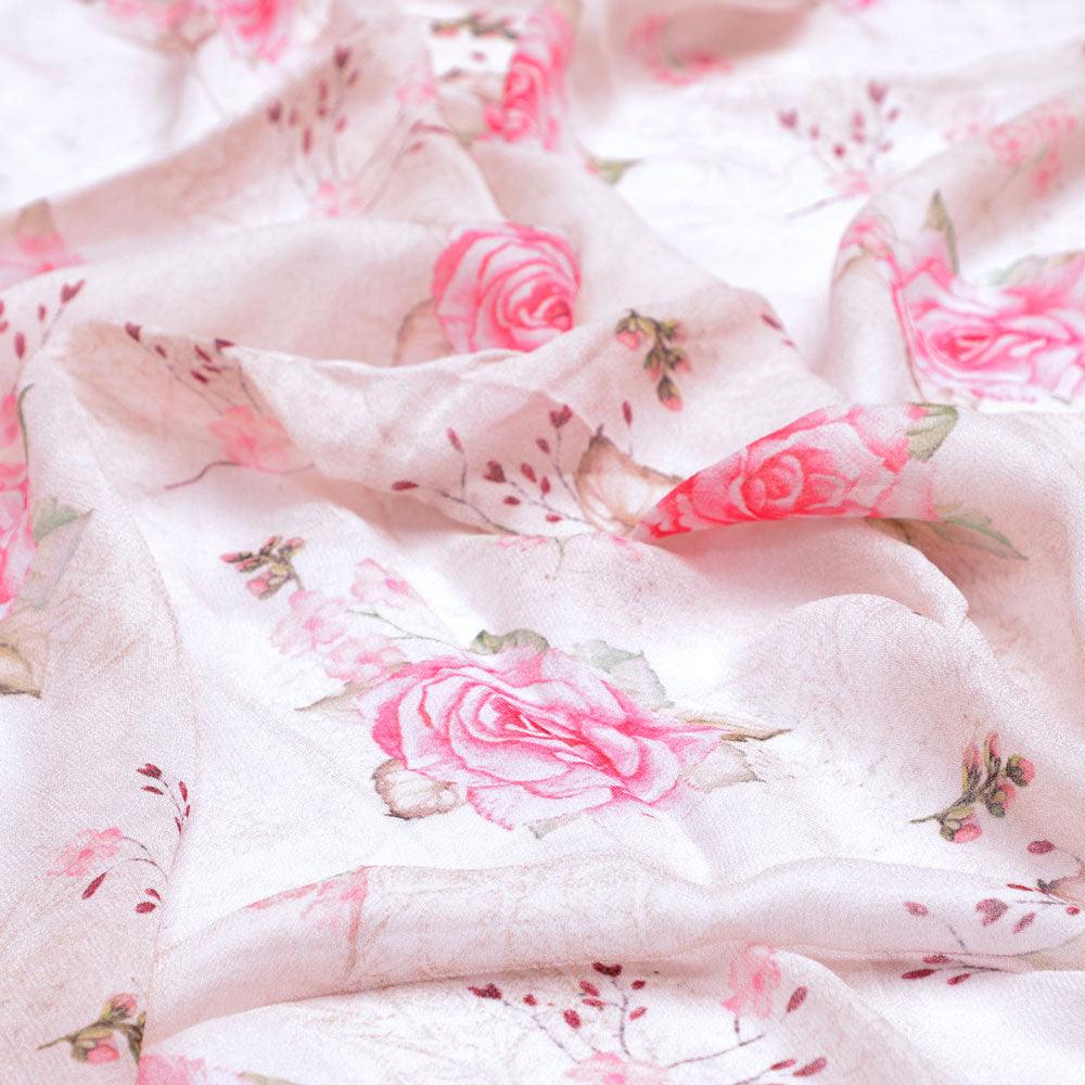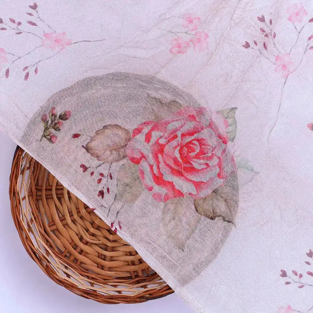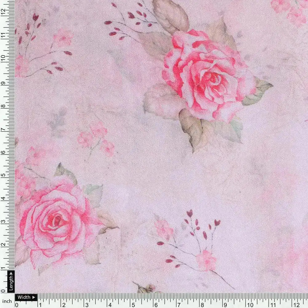 Beautiful Floating Pink Rose Digital Printed Fabric