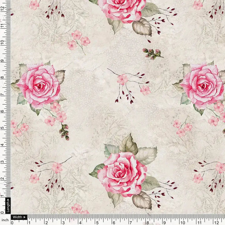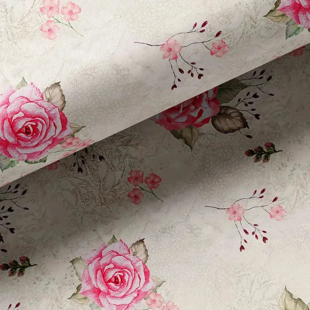 Beautiful Floating Pink Rose Digital Printed Fabric