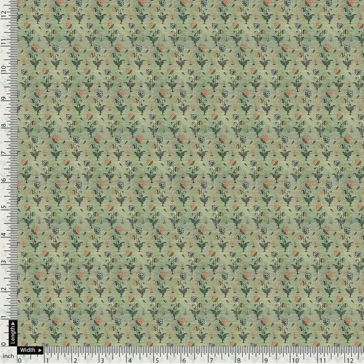 Beautiful Green Seamless Motif Flower Digital Printed Fabric - Japan Satin