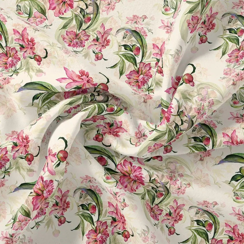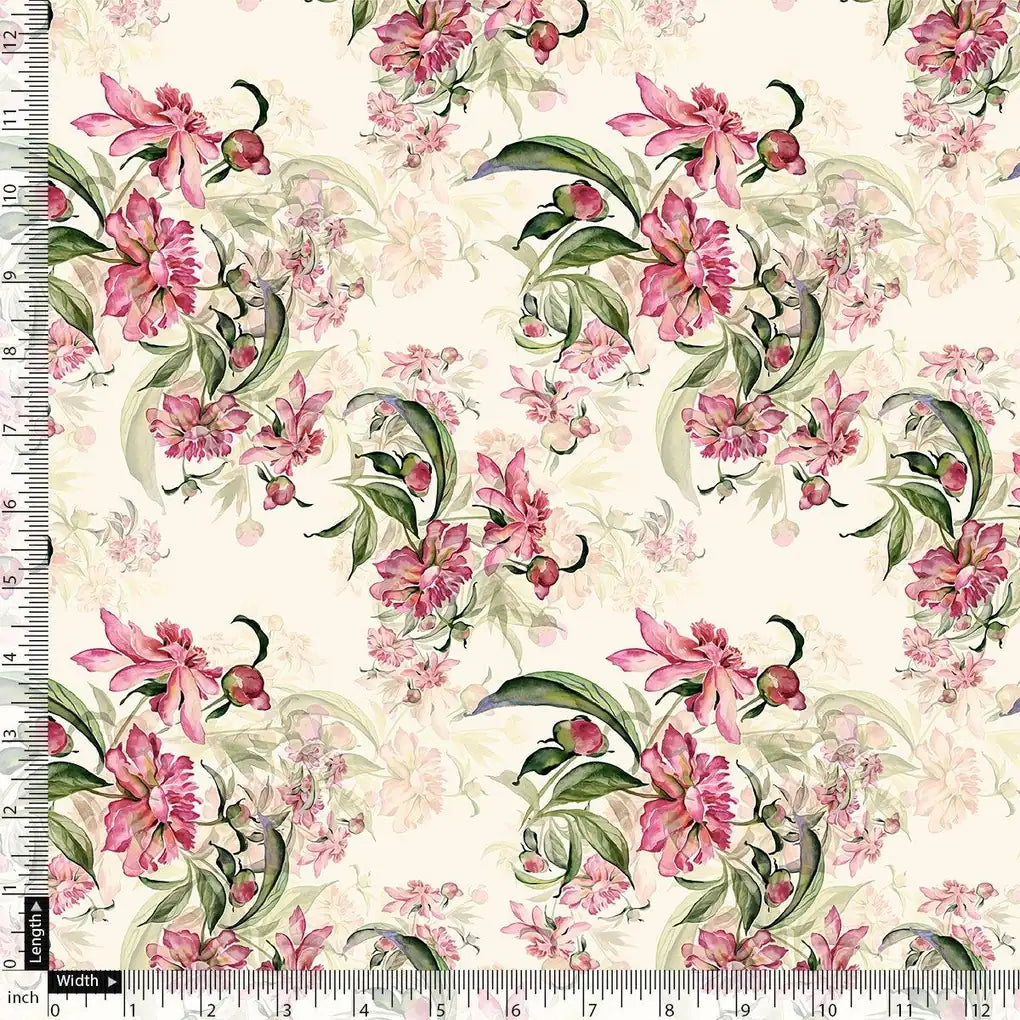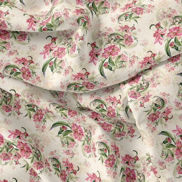 Beautiful Pink Calendula Flower Digital Printed Fabric