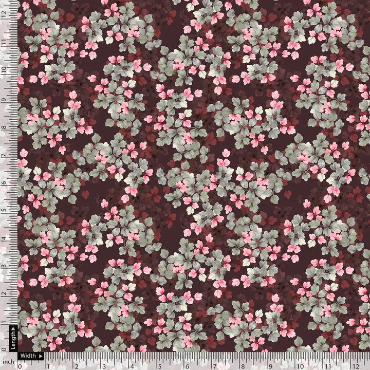 Beautiful Pink With Grey Leaves Digital Printed Fabric - Poly Muslin