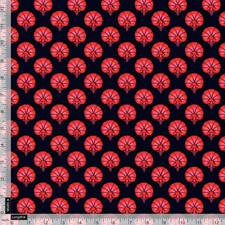 Beautiful Red Floral Over Dark Blue Base Printed Fabric