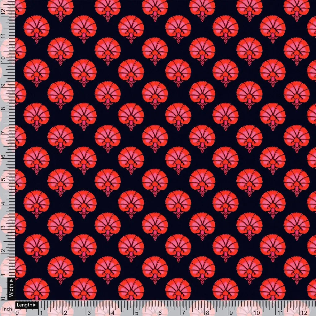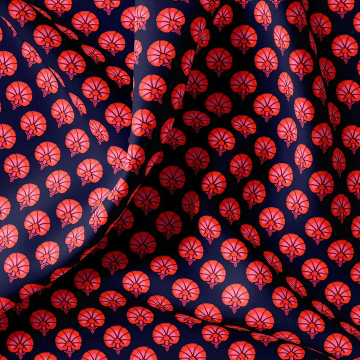 Beautiful Red Floral Over Dark Blue Base Printed Fabric