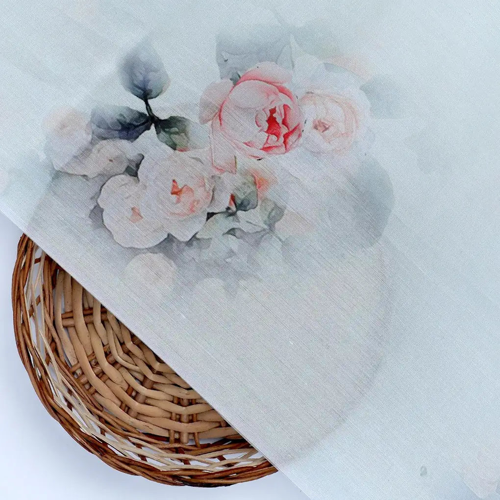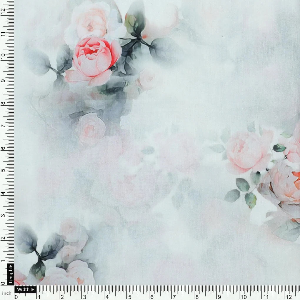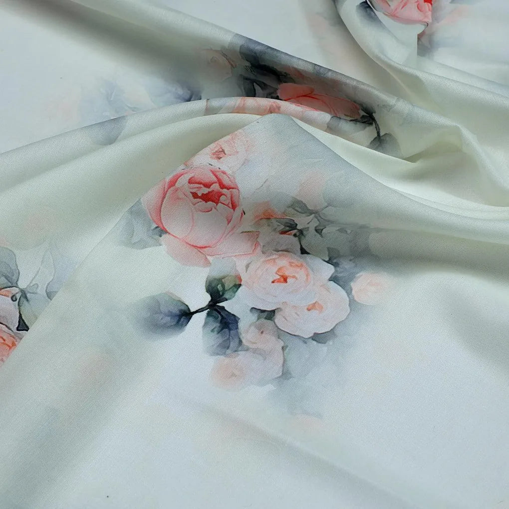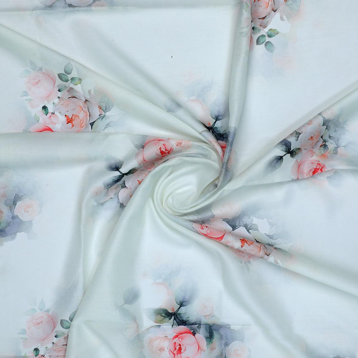 Beautiful Summer Peony Bunch Digital Printed Fabric - Muslin