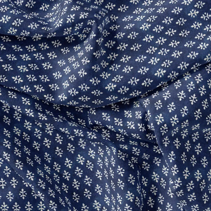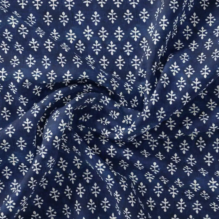 Beautiful Tiny Blue Plants Digital Printed Fabric - Rayon