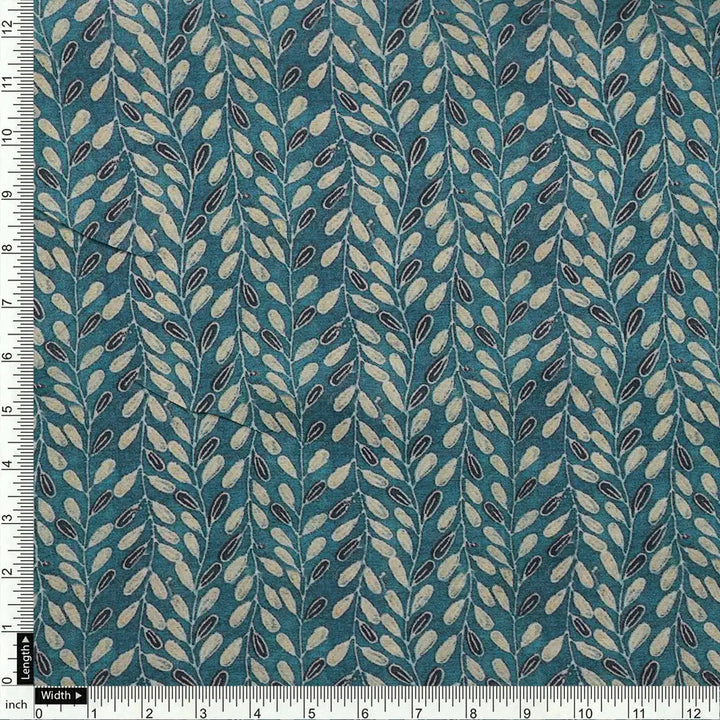 Beautiful Valley Of Leaves With Blue Digital Printed Fabric - Pure Muslin