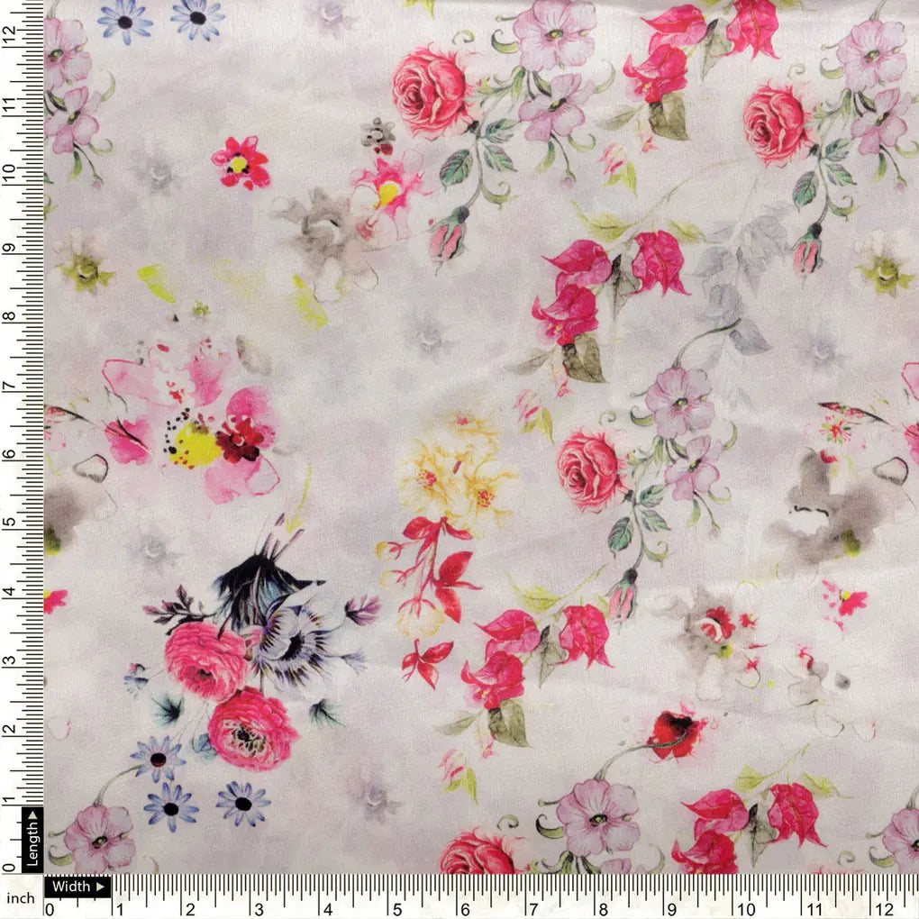Beautifull Red And Pink Camellia Rose Of Branch Digital Printed Fabric - Japan Satin