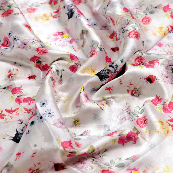 Are you looking for a beautiful and unique fabric for your next evening apparel? Look no further than the Beautifull Red and Pink Camellia Rose of Branch Japan Satin Evening Apparel Printed Fabric from FAB VOGUE Studio. This digital printed fabric is made from high-quality polyester and Japan Satin, giving it a luxurious and elegant feel. The fabric is a white background with a beautiful floral pattern in shades of red and pink, perfect for adding a touch of sophistication to any outfit. With its unique design and quality construction, this fabric is sure to make your next evening apparel stand out.