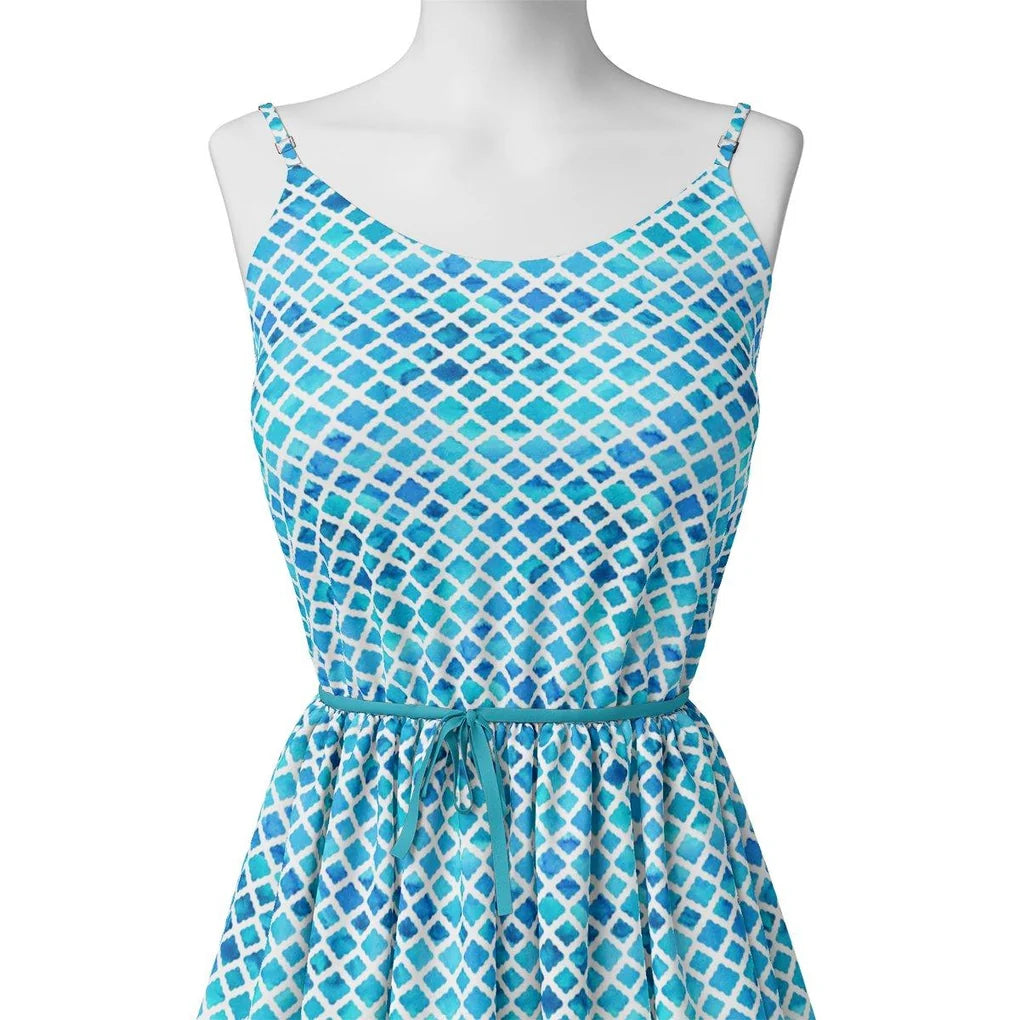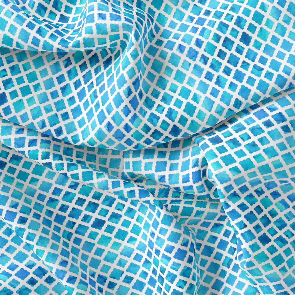 Blue Lattice Lovely Seamless Digital Printed Fabric - Pure Georgette