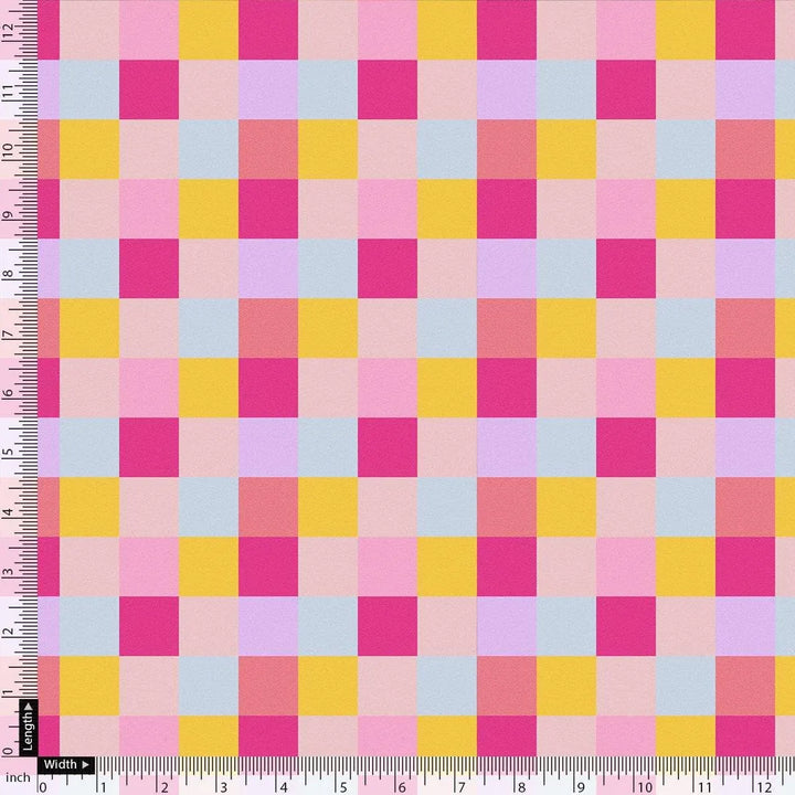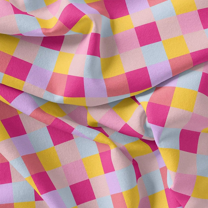 Buffalo Checks Pink And Yellow Digital Printed Fabric - Weightless