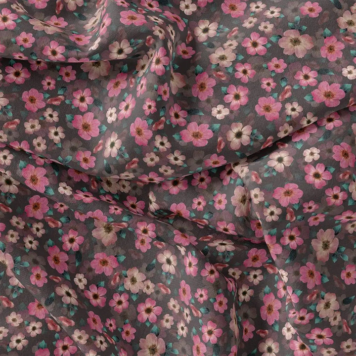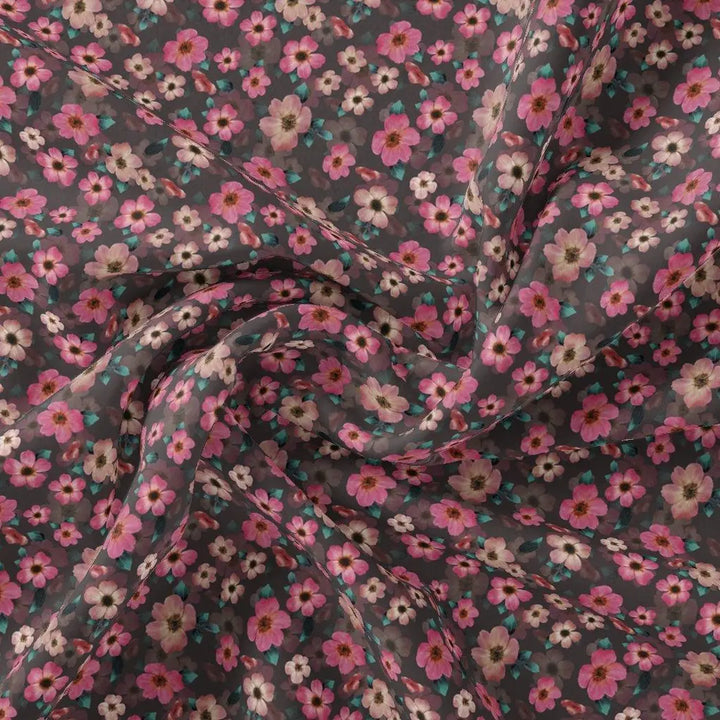 Buttercup Pink Floral Digital Printed Fabric - Rayon