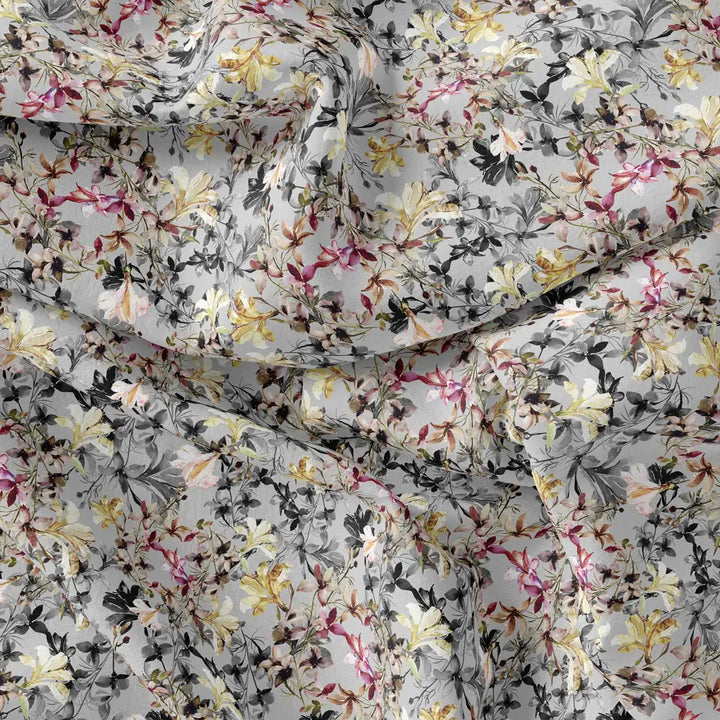 Calico Flower Yellow And Purple Floral Digital Printed Fabric
