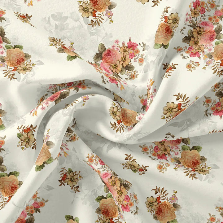 Classic Multicolor Roses With Leaves Digital Printed Fabric - Weightless