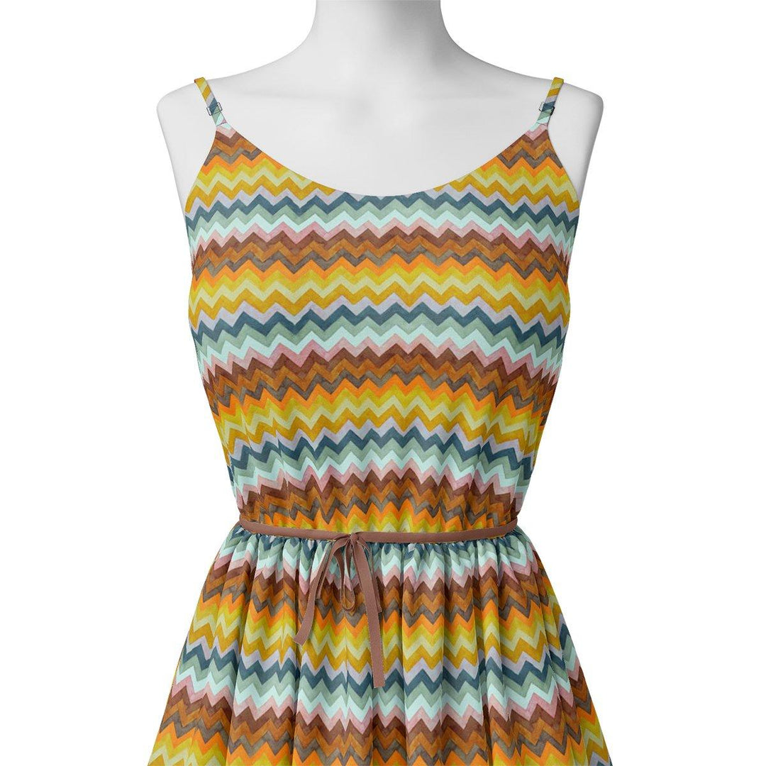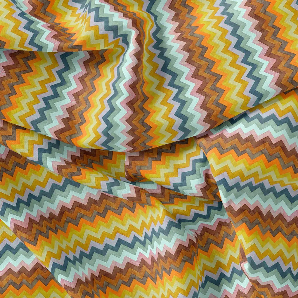 Classic Zigzag Multicolour Waves Digital Printed Fabric - Weightless