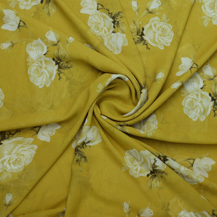 Classy Green and Yellow Floral Georgette Fabric