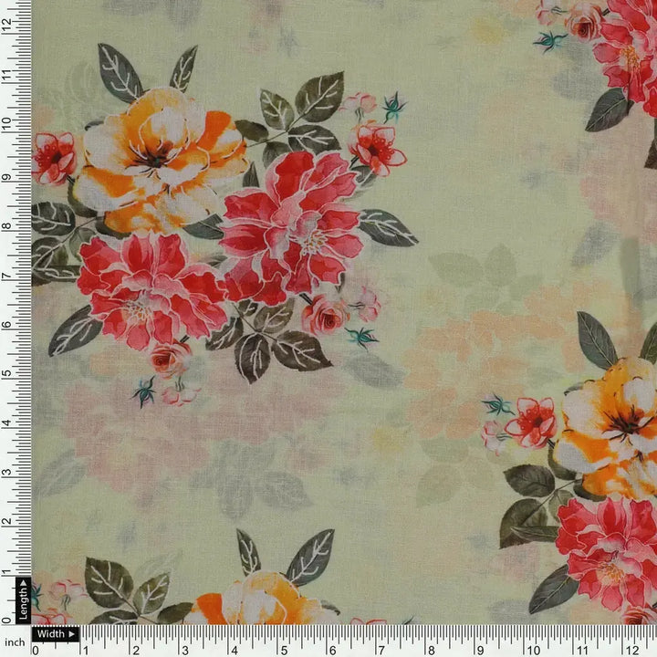 Colorful Floral Yellow Base Digital Printed Fabric - Pure Cotton