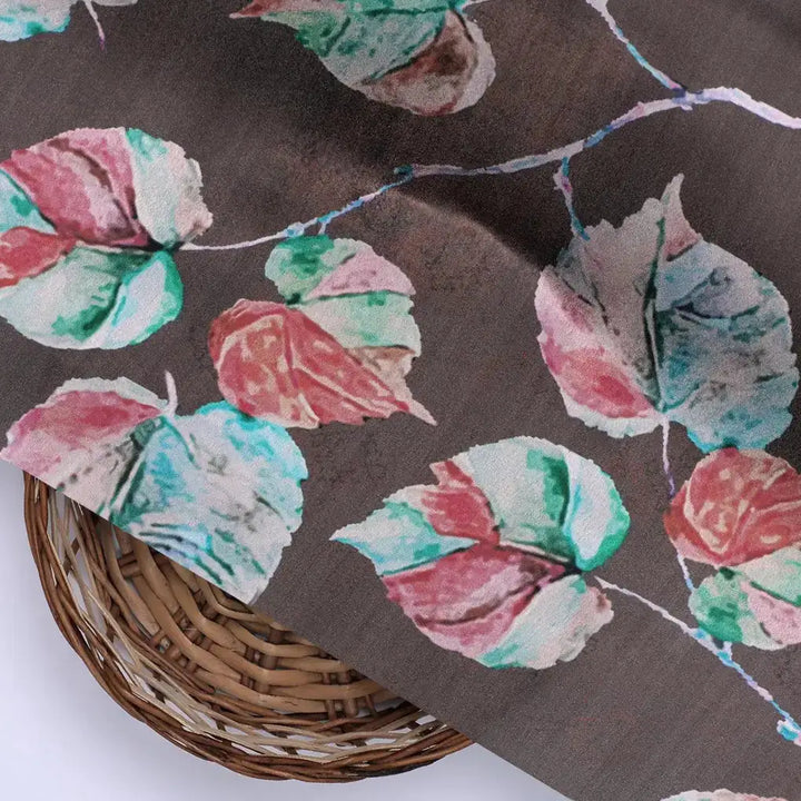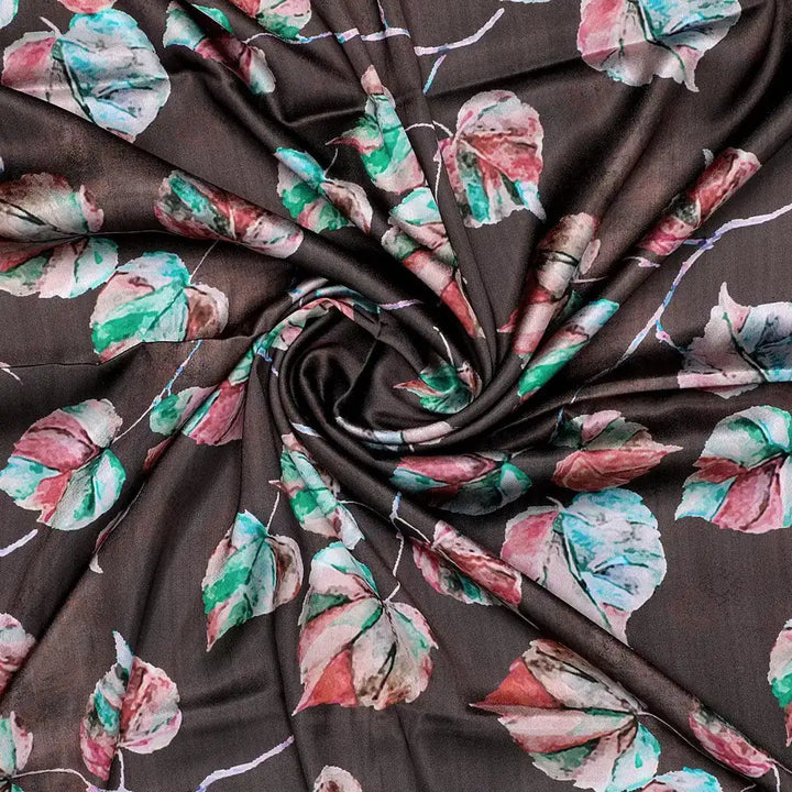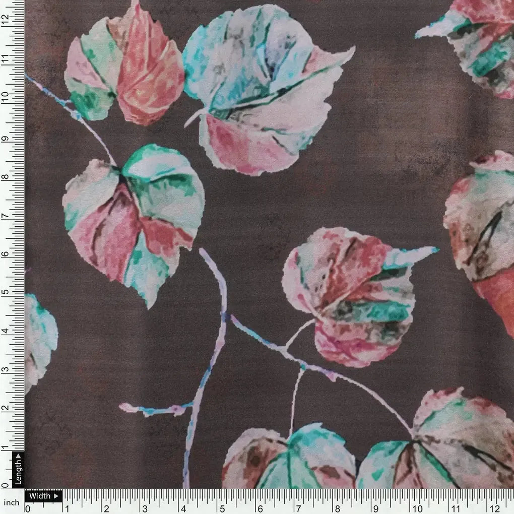 Colourful Floating Leaves Digital Printed Fabric - Japan Satin