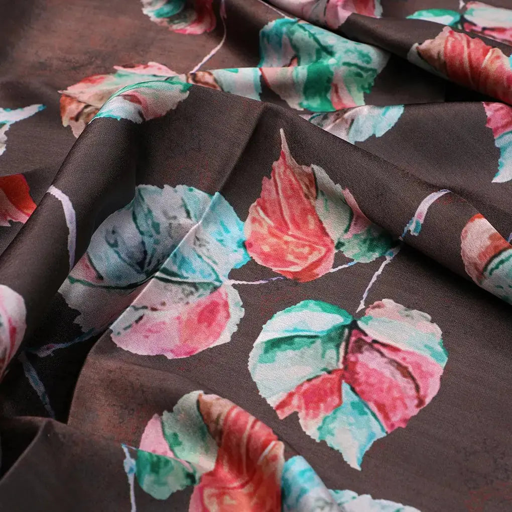 Are you looking for a stylish fabric that stands out from the rest? Look no further than the Colourful Floating Leaves Japan Satin Saree Printed Fabric from FAB VOGUE Studio. This high-quality fabric is made from polyester and features a unique Japan Satin weave. The fabric has a beautiful brown colour and a unique pattern of leaves, giving it a truly unique look. Whether you're looking to make a statement or just add a touch of style, this fabric is the perfect choice. With its soft texture and stylish design, you can be sure that this fabric will make any project stand out from the crowd. Get ready to make a statement with this one-of-a-kind fabric from FAB VOGUE Studio.