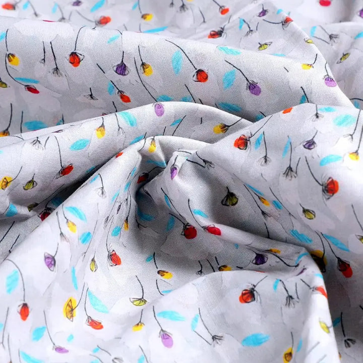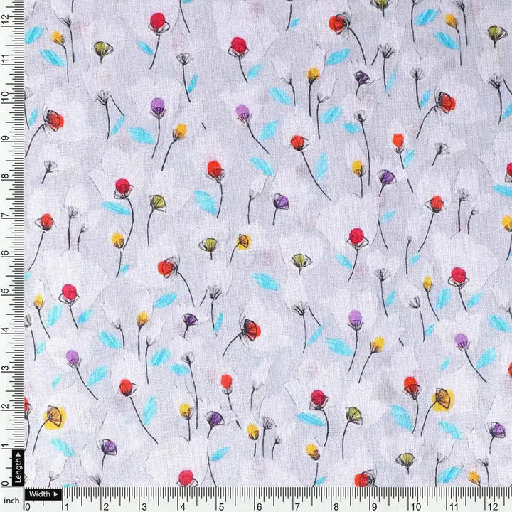 Colourful Flower Chintz With Small Leaves Digital Printed Fabric - Pure Cotton