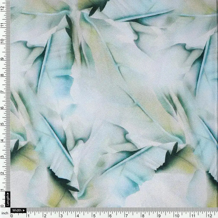 Cosmic Blue Leaves Printed Silk Crepe Fabric Material