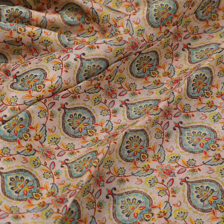 Cream Beautiful Damask Pattern Digital Printed Fabrics