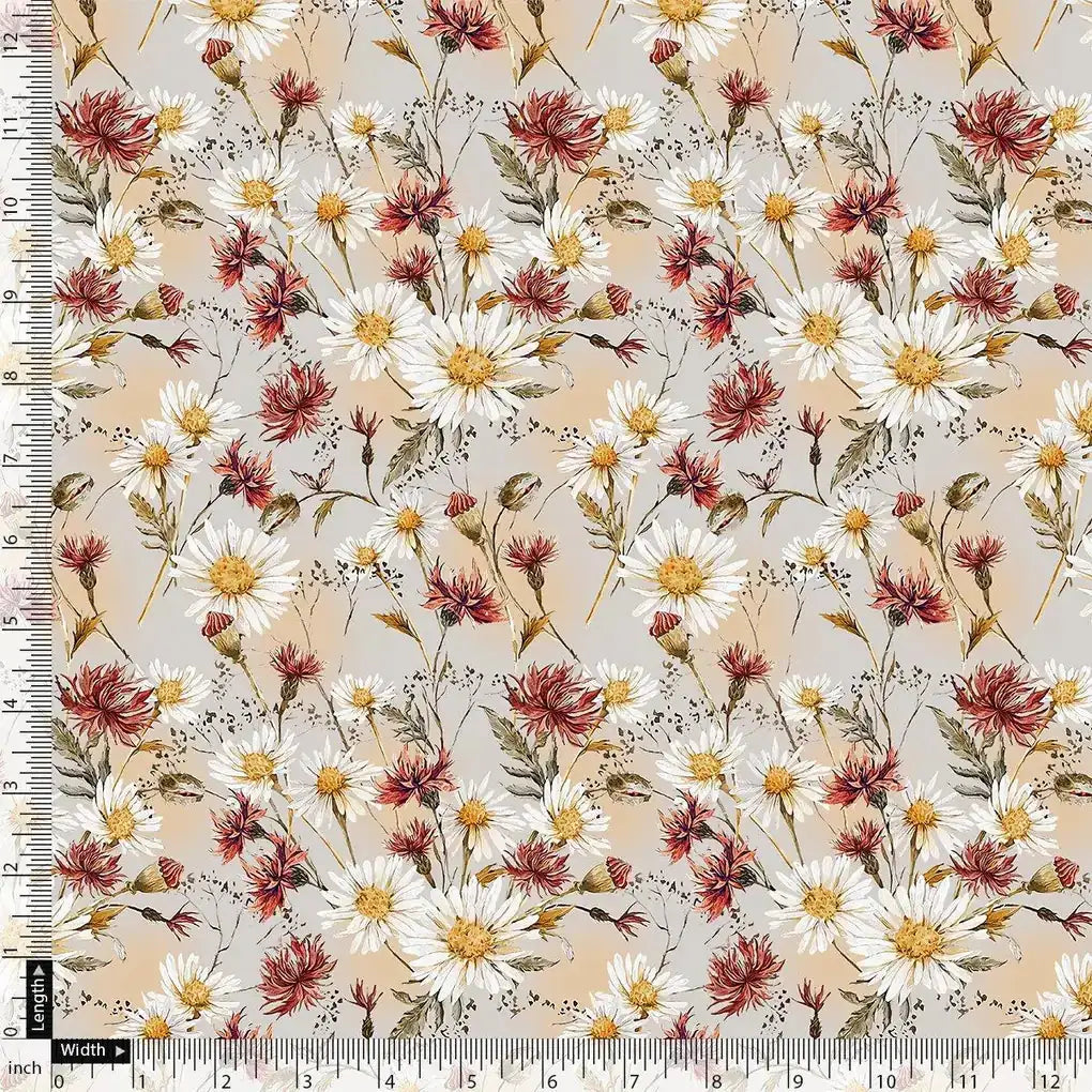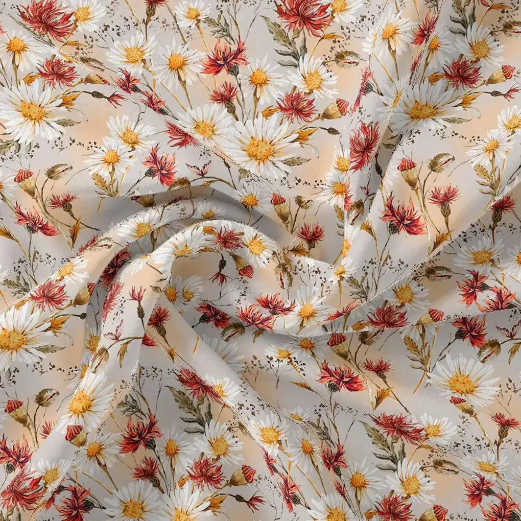 Daisy Branch Of White Flower Digital Printed Fabric - Kora Silk – ks 0 ta06071 110 daisy branch of white flower digital printed fabric kora silk 1