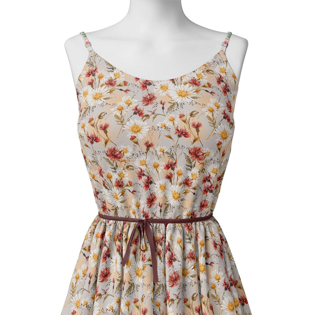 Daisy Branch Of White Flower Digital Printed Fabric - Kora Silk