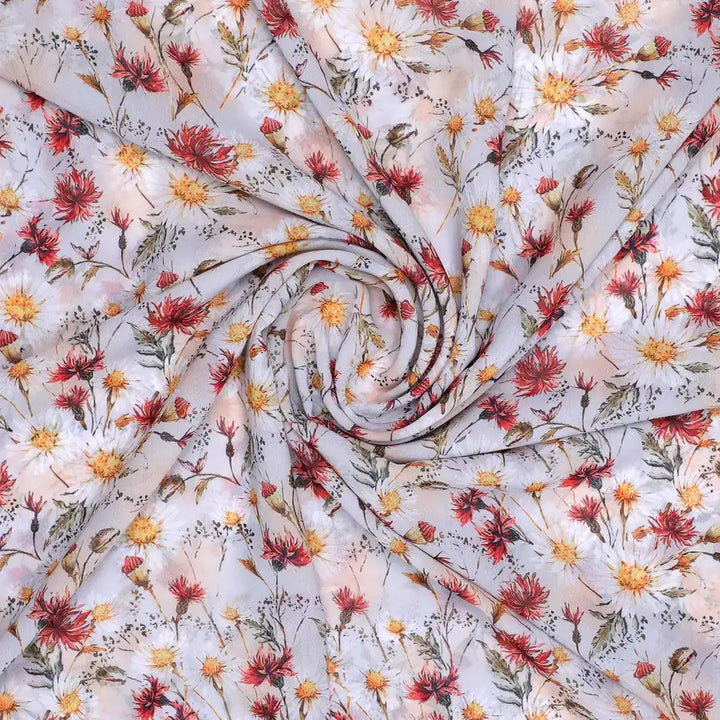 Daisy Branch Of White Flower Digital Printed Fabric - Weightless