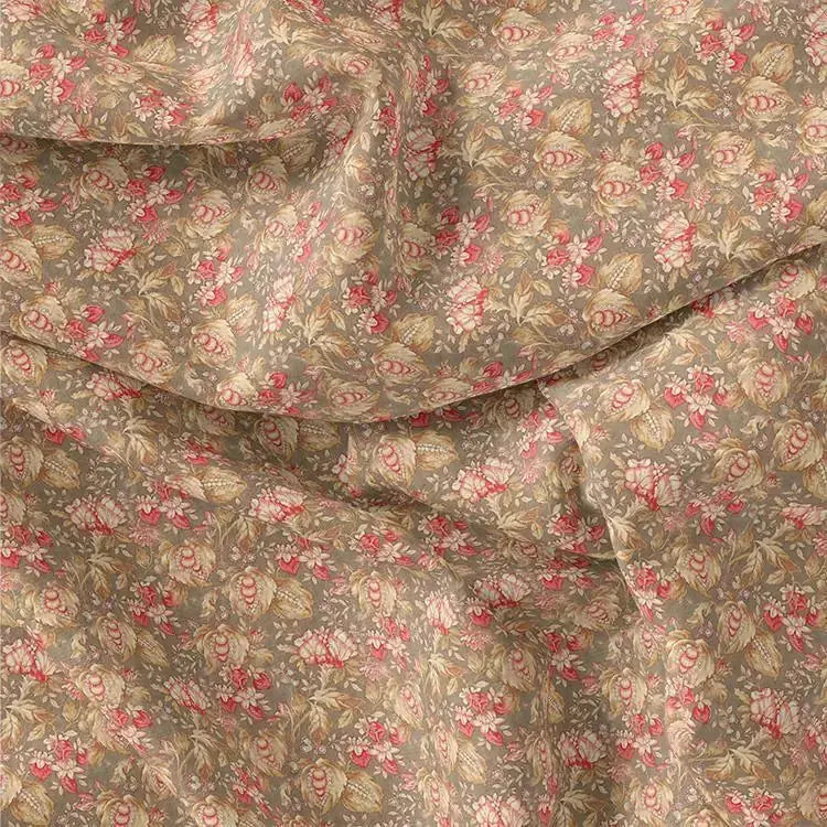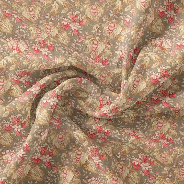 Decorative Leaves With Chiku Brown Digital Printed Fabric - Crepe