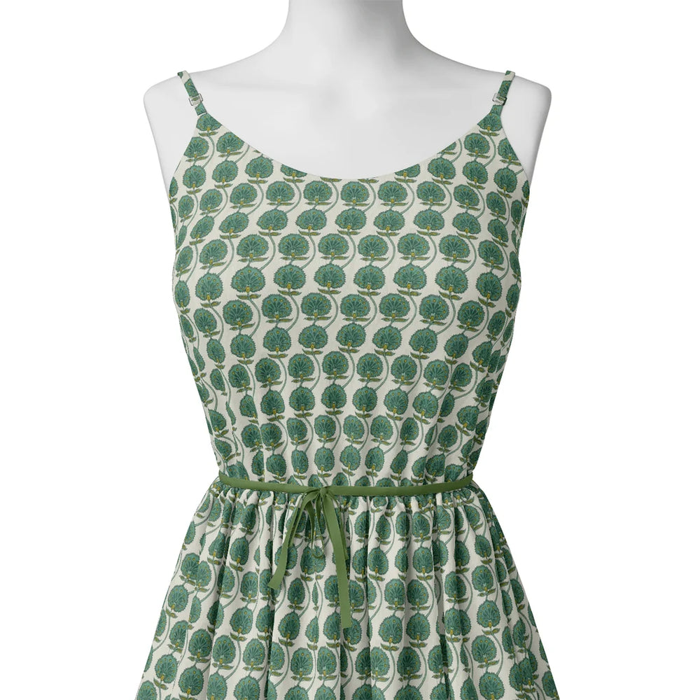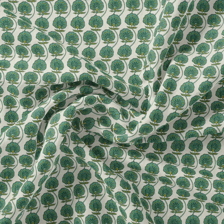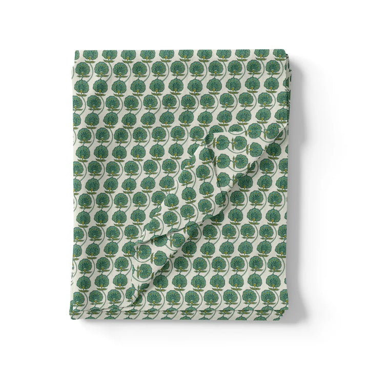 Decorative Palmate Divergent Green Pista Leaves Digital Printed Fabric