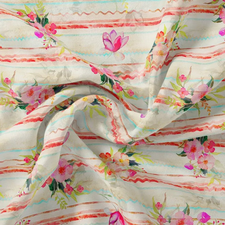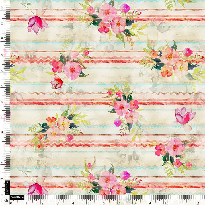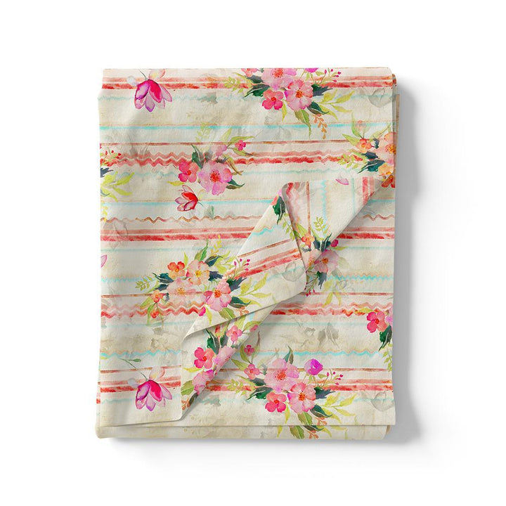 Decorative Watercolour Spring Floral Digital Printed Fabric - Cotton