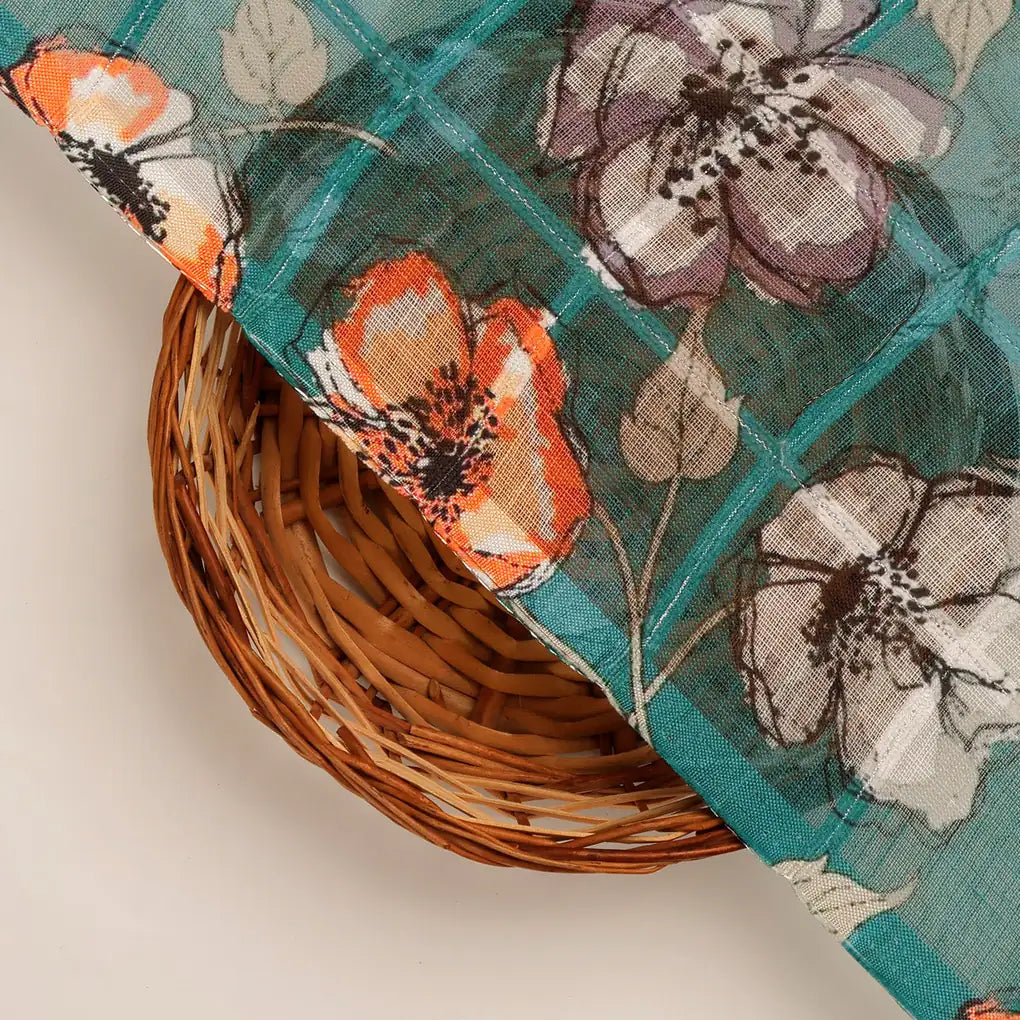 FAB VOGUE Studio Digital Printed Linen Fabric - Teal Floral