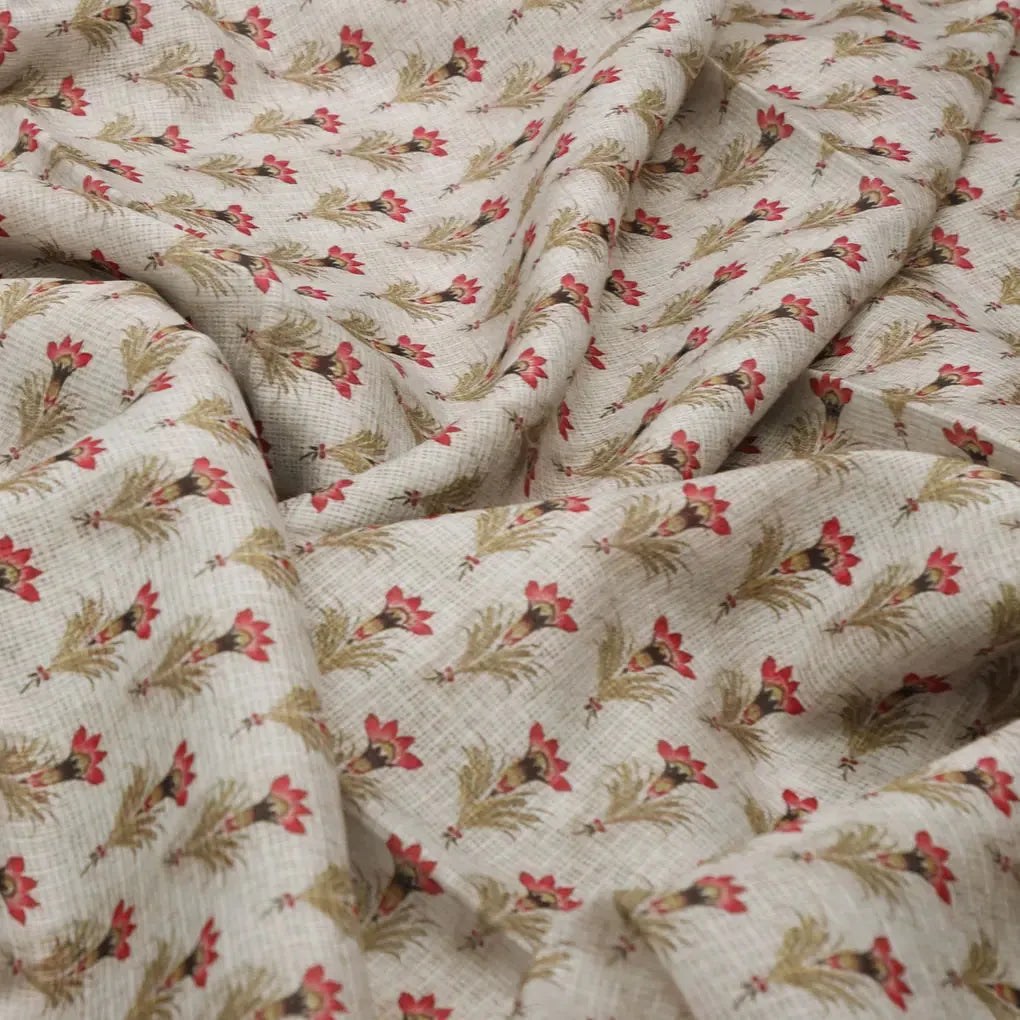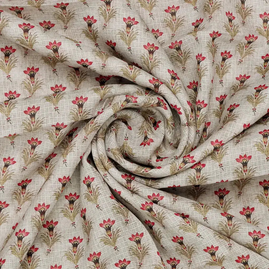 Indulge in the exquisite beauty of our Decorative Kota Doria fabric, boasting a captivating digital print that showcases intricate floral and quirky motifs. Crafted from the finest Kota Doria fabric, known for its lightweight and airy texture, this fabric exudes both elegance and comfort. Its vibrant pink and cream hues create a captivating visual appeal, making it perfect for creating stunning garments, home decore, and accessories. Explore the limitless possibilities with FAB VOGUE Studio's Decorative Kota Doria fabric, where traditional artistry meets modern design.