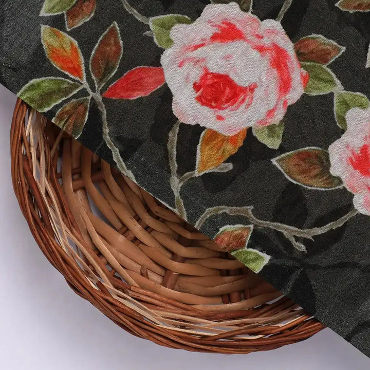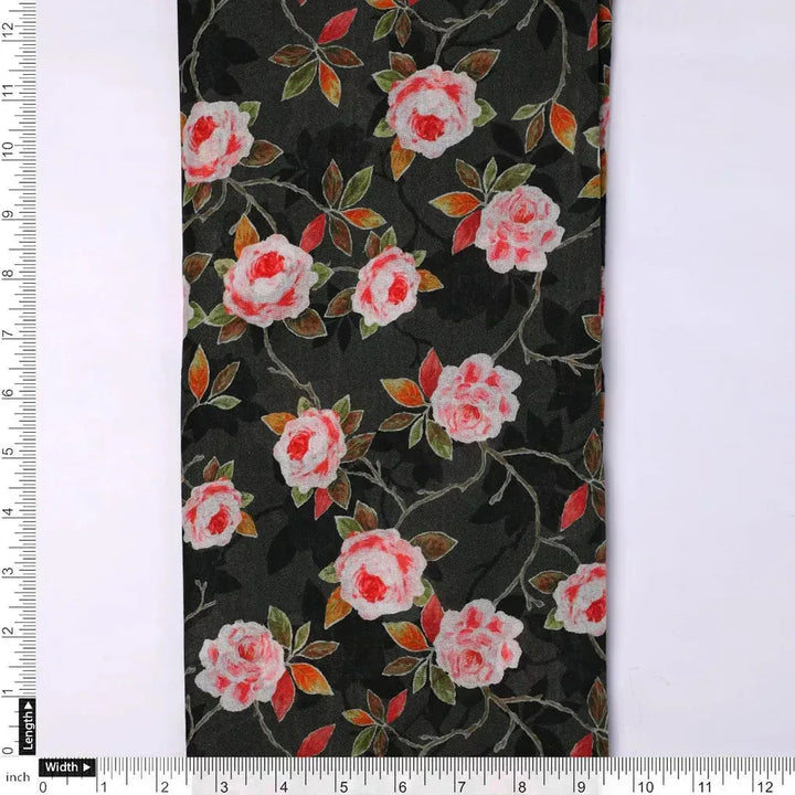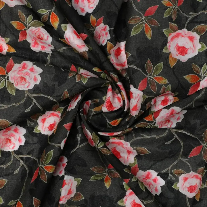 Ditsy Pink Rose With Green Leaves Digital Printed Fabric - Pure Cotton