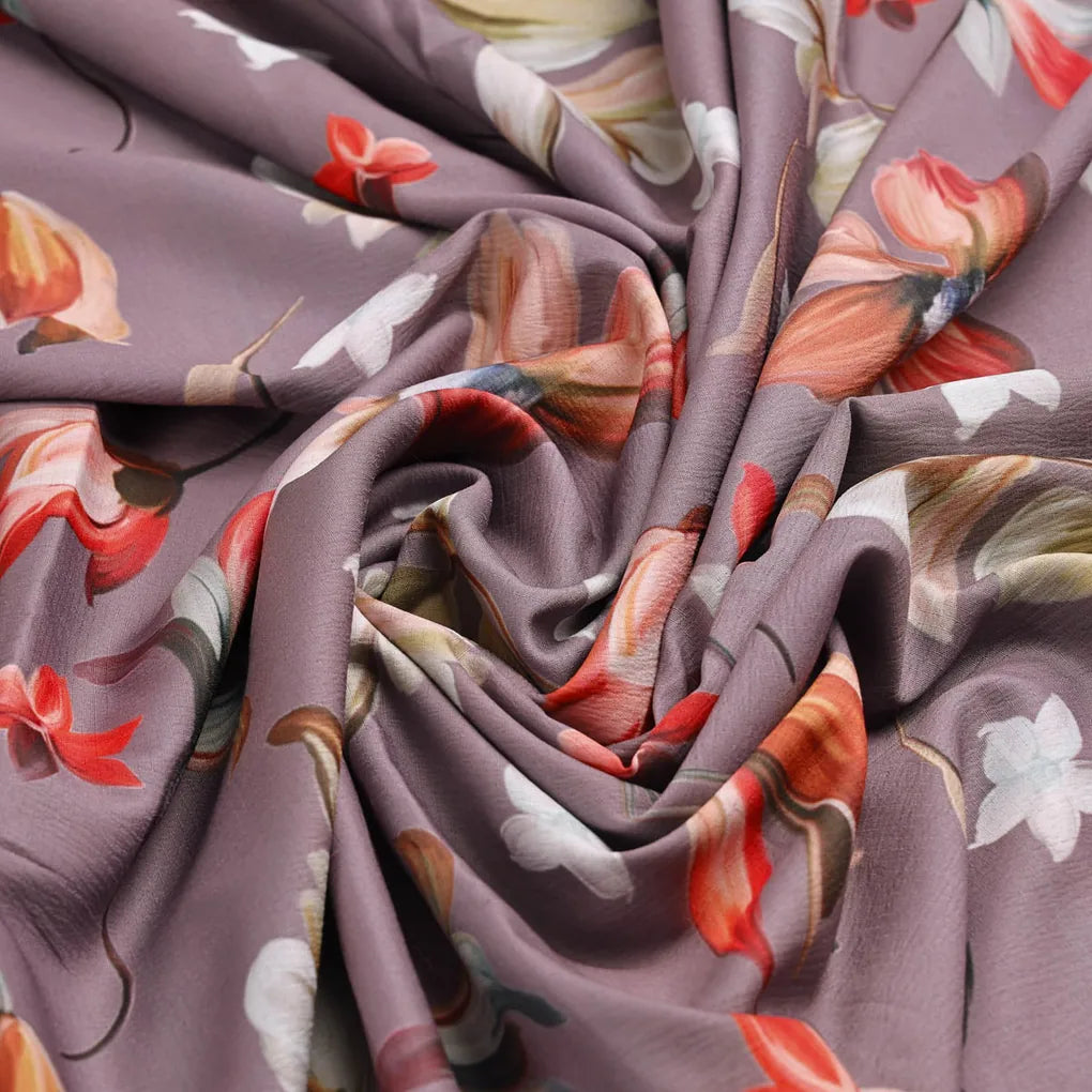Elegant Mauve Floral Printed Polyester Fabric for Apparel