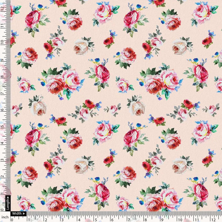 Exotic Blooms Water Color Cream Rose Digital Printed Fabric - Kora Silk