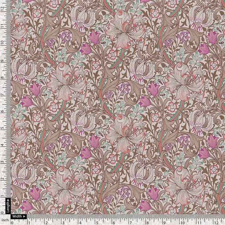 Are you looking for the perfect fabric for your festive look? Look no further than FAB VOGUE Studio's Festive Curve Design Pink Doted Flower Weightless Clothing Printed Fabric. Crafted from lightweight Polyester, this fabric is perfect for creating stylish and comfortable garments. Its floral pattern features a brown color palette for a timeless look.