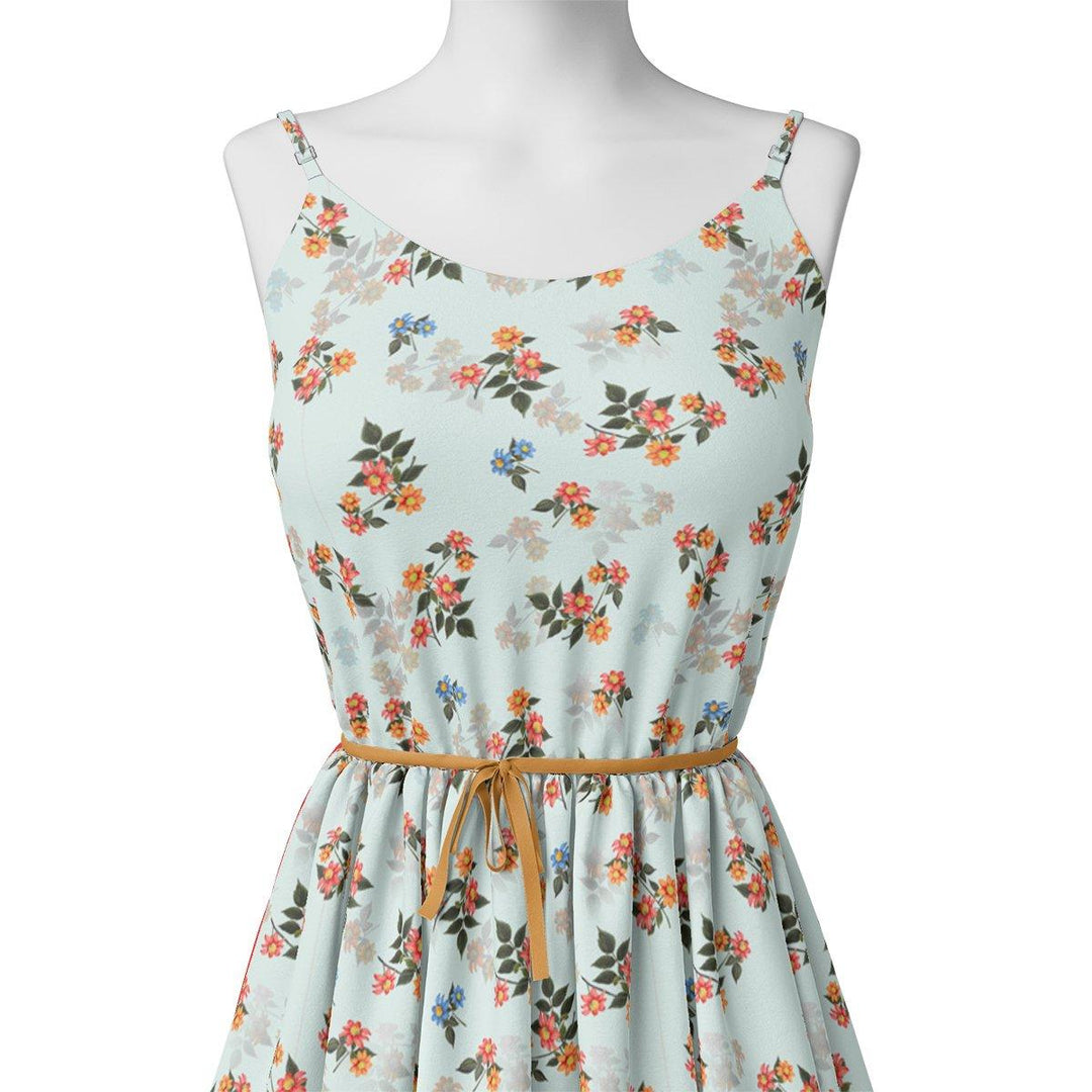 Floating Yellow Sunflower With Green Leaves Digital Printed Fabric