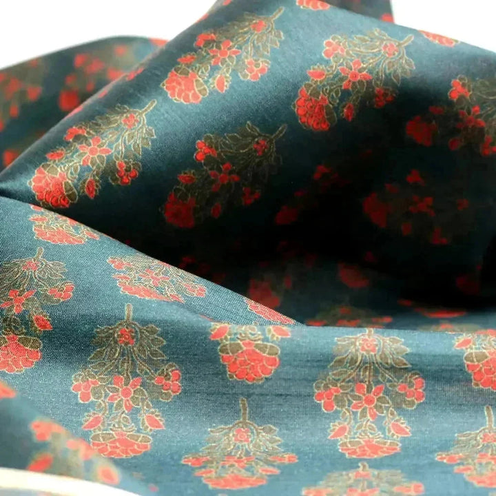 Are you looking for a unique and stylish printed fabric? Look no further than FAB VOGUE Studio's Floral Dabu Tusser Silk Nehru Jacket Printed Fabric. Crafted from high-quality polyester, this fabric has a vibrant green color and a ditsy pattern that will make any outfit stand out. Whether you're creating a Nehru jacket, a dress, or something else entirely, this fabric is the perfect choice. Get yours now from FAB VOGUE Studio and make your wardrobe stand out.